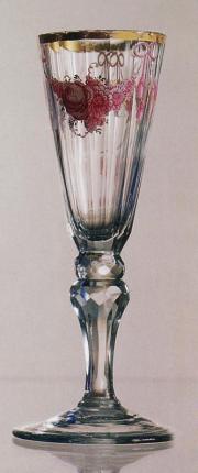 стекло бесцветное, роспись пурпуром по белой эмали, роспись золотом