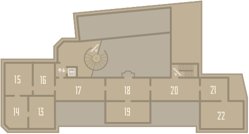 The gallery on the third floor next to the atrium is the most adaptable part of the premises belonging to the Department of Private Collections. The space in these rooms is used for temporary exhibitions or for exhibiting collections usually held in the Department's repositories. On this floor there is also a media-centre, where lectures, meetings and film screenings are held.