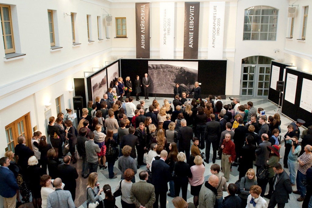 Открылась выставка «Анни Лейбовиц. Жизнь фотографа 1990 – 2005»11.10.2011 Отдел личных коллекций 11 октября 2011 года в здании Отдела личных коллекций состоялось торжественное открытие выставки «Анни Лейбовиц. Жизнь фотографа 1990 – 2005». Это первый масштабный проект отдела Искусства фотографии ГМИИ им. А.С. Пушкина в преддверии 100-летия Музея. Торжественную часть вернисажа предварял музыкальный эпиграф. Джазовые фортепианные импровизации на популярные американские темы исполнил солист Московской государственной консерватории Фень Юань. На церемонии открытия присутствовали Анни Лейбовиц, заместитель министра культуры РФ Андрей Бусыгин, посол США в России Джон Байерли и куратор выставки Ольга Аверьянова. Вела торжественную церемонию открытия директор Музея Ирина Антонова. В своей приветственной речи Ирина Александровна отметила, что Анни Лейбовиц обладает особым взглядом на мир, который ощущается в ее работах. Фотограф в свою очередь призналась, что ее всегда вдохновляли богатые культурные традиции России. Это "...великая страна танца и литературы. Здесь рождается большое искусство", - сказала она. В 2006 году была издана фотокнига Анни Лейбовиц "Жизнь фотографа 1990-2005", которая легла в основу выставки. Экспозиция знакомит посетителей с различными работами художницы — портретами, пейзажами, интерьерной съемкой, репортажными снимками, — которые представят творчество одного из наиболее известных фотографов современности российскому зрителю. |