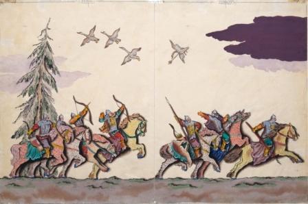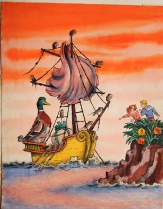 Хорошо узнаваемый, яркий и нарядный стиль иллюстраций Конашевича стал образцом для более молодого поколения художников. Но, отдавая дань «отцу советской детской иллюстрации», молодые художники искали собственные пути. На нашей выставке представлено несколько рисунков Ильи Кабакова к книжкам научно-популярной тематики для детей, выполненные художником в конце 1960-х годов. Самый большой раздел посвящен тандему художников Эрика Булатова и Олега Васильева: мы показываем их рисунки 1970-х годов к трем детским изданиям: к двум знаменитым сказкам Шарля Перро – «Золушка» и «Спящая красавица», а также к сказочной истории Сельмы Лагерлеф «Чудесное путешествие Нильса с дикими гусями». Завершает экспозицию подборка из 20 иллюстраций Виктора Пивоварова к сказкам Андерсена из собрания ГМИИ.
