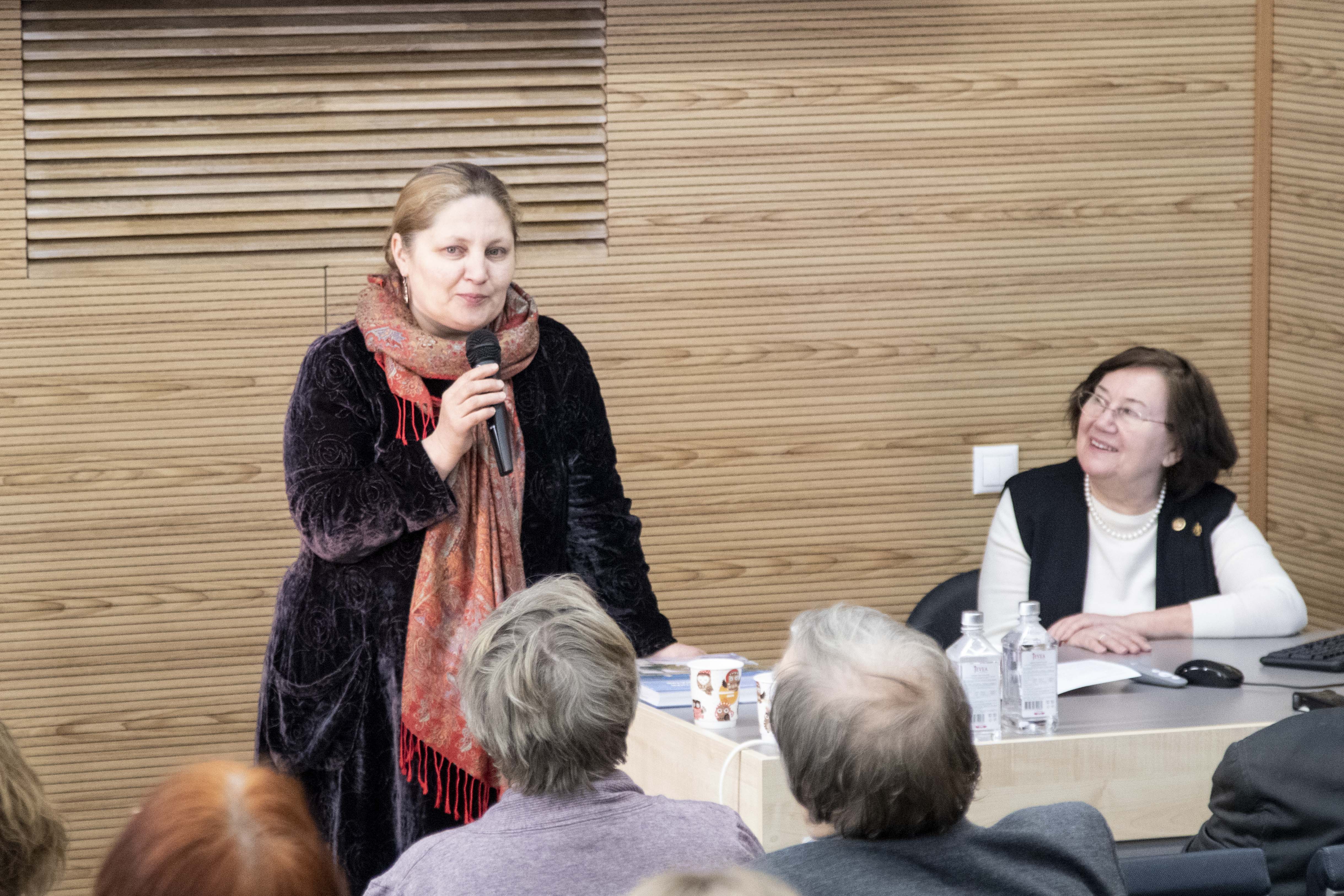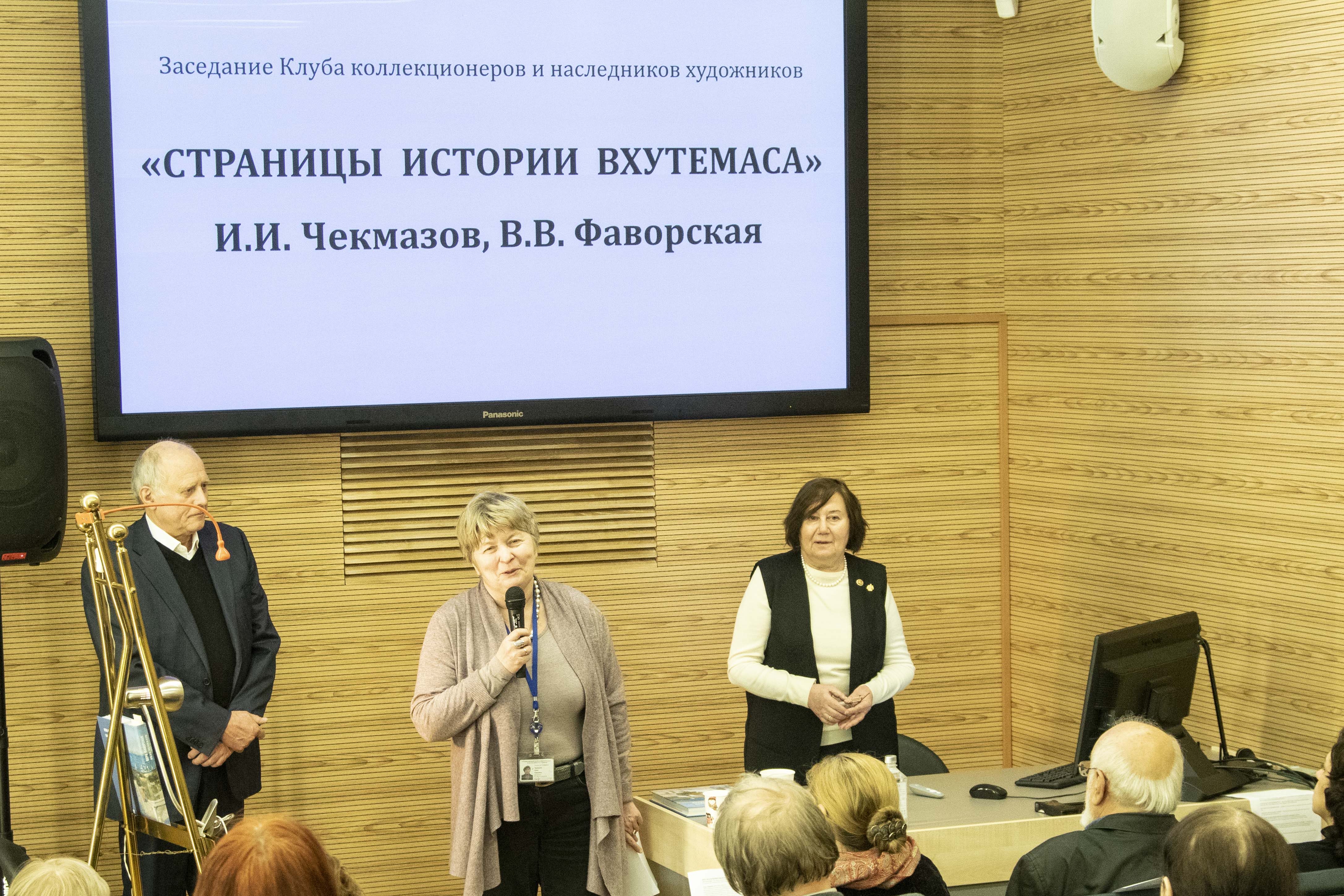 Вечер, посвященный творческому наследию художников В.В. Фаворской и И.И. Чекмазова18.12.2019 Отдел личных коллекций 18 декабря 2019 года в лекционном зале Отдела личных коллекций ГМИИ им. А.С. Пушкина прошел вечер, посвященный творчеству художников В.В. Фаворской и И.И. Чекмазова, инициатором и организатором которого была заслуженный художник России, академик РАХ, хранитель творческого наследия В.В. Фаворской и И.И. Чекмазова Мария Владиславовна Федорова. Вступительное слово было предоставлено заведующей Отдела личных коллекций Н.Б. Автономовой и директору НИИ РАХ Н.В. Толстой. Заведующая отделом живописи первой половины XX века Государственной Третьяковской галереи Т.А. Ермакова, рассказала о совместно подготовленной с М.В. Федоровой ретроспективной выставке работ В.В. Фаворской и И.И. Чекмазова, прошедшей в Третьяковской галерее в 2003 году. Программа вечера по замыслу М.В. Федоровой состояла из семи «этюдов» о жизни двух мастеров-супругов, выдающихся художников и профессоров живописи: «Детство. Юность», «ВХУТЕМАС», «Квартира в Долгом переулке», «Преподавание», «Крым. Козы», «Изгнание из института», «Жизнь после жизни». Было рассказано об ученических годах Фаворской и Чекмазова в мастерских К.А. Коровина и Р.Р. Фалька, а также об их таланте педагогов и стремлении дать ученикам достойное художественное образование. Выступление сопровождалось презентацией с показом фотографий и произведений художников, что позволило слушателям в полной мере окунуться в художественную атмосферу 1920-40-х годов. Заслуженный артист России Ю.Б. Ильин прочитал отрывки из книги «Вера Фаворская. Иван Чекмазов. Творческое наследие». В завершении вечера была продемонстрирована видеозапись вернисажа выставки В.В. Фаворской и И.И. Чекмазова в ГТГ, где выступали известные деятели культуры: А.И. Морозов, В.М. Петюшенко, А.В. Заволокин, Э.Г. Браговский. |