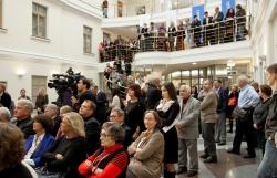Открытие выставки «Возвращение «Святого Луки». Западноевропейская живопись VI-XVIII вв. из музеев Украины»17.07.2012 В понеденик, 16 июля в здании Отдела личных коллекций ГМИИ им. А.С. Пушкина открылась выставка «Возвращение «Святого Луки». Западноевропейская живопись VI-XVIII вв. из музеев Украины», представляющая зрителям 100 картин западноевропейских художников из девяти музеев этой страны. На торжественной церемонии открытия, которую вела директор ГМИИ Ирина Антонова, с приветственными речами выступали представители России и Украины: министр культуры РФ Владимир Мединский, министр культуры Украины Михаил Кулиняк, посол Украины в РФ Владимир Ельченко, генеральный директор Национального музея искусств имени Богдана и Варвары Ханенко Вера Виноградова. Один из кураторов выставки, заведующий отделом искусства старых мастеров ГМИИ им. А.С. Пушкина Вадим Садков в своей речи отметил многолетнее сотрудничество специалистов ГМИИ с музеями Украины, одним из результатов которых стала эта выставка. |